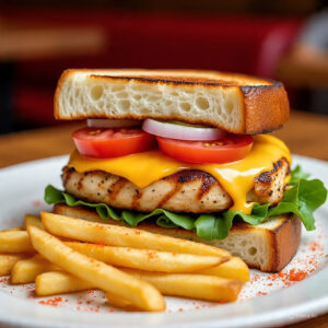 BBQ sauce beef patty ,cheese slice ,salad,mayo & fries.